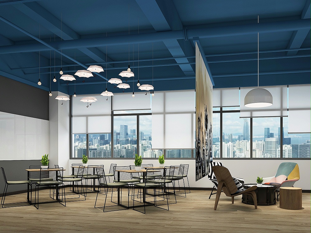 洽淡室和茶水间设计成双重组合模式,可供叠加使用,出了可以洽谈客户的同时还可以偶尔办一场休闲式会议,促进同事间交流,在轻松的状态下化解工作上的压力和尴尬。