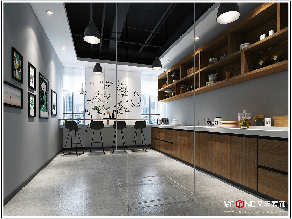 茶水间一直都是一家办公司必不可少的存在,它是办公室中最放松的地方,因此深圳茶水间装修设计不必像办公区一样严肃。整体的风格可以更加的放松,元素可以更丰富.